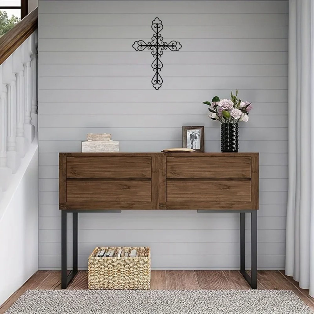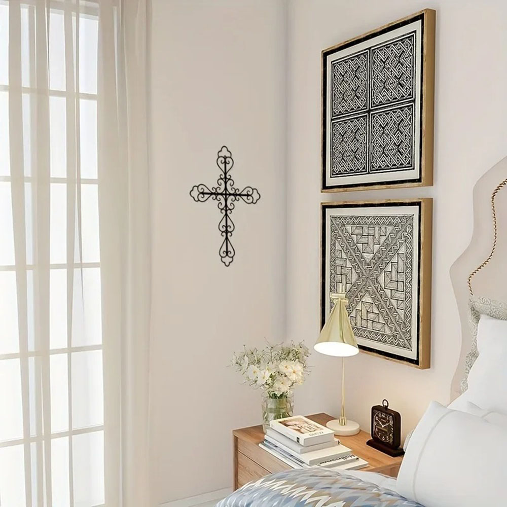 1pc Metal Retro Cross Wall Art Decoration, Metal Artwork, Scene Decoration