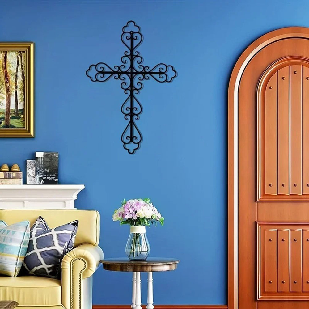 Home > 1pc Metal Retro Cross Wall Art Decoration, Metal Artwork, Scene Decoration