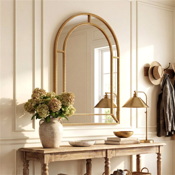 • Elegant Beaded Design: The gold beaded metal frame instantly elevates your room with its sophisticated design, adding a touch of glamour. This decorative mirror is the perfect statement piece for living rooms, bedrooms, hallways, fireplaces, or entryways, effortlessly enhancing your existing decoration.
