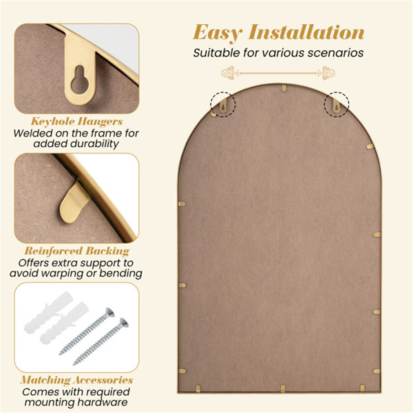 • Easy Installation: The keyhole hangers are welded directly onto the frame, offering reliable strength and stability. Matching accessories are included, so you can securely and quickly display your mirror.