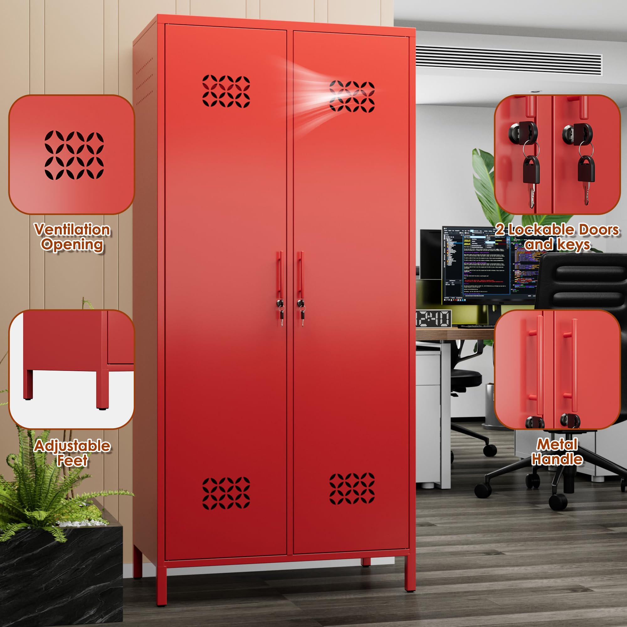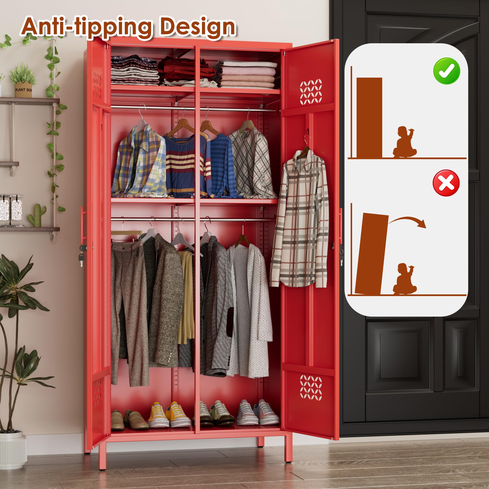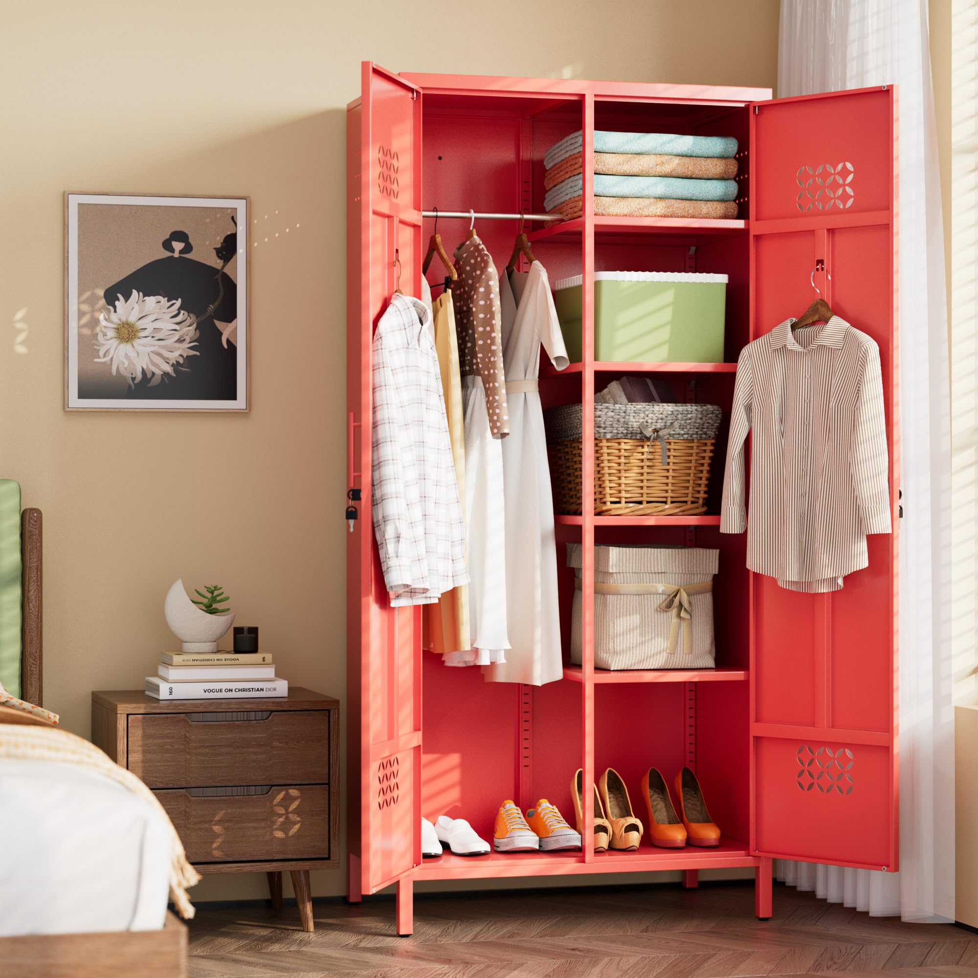 • 【Unique Design】Metal armoire wardrobe closet doors are equipped with ventilation holes,which help you keep items dry and ventilated,eliminating odor and moisture.Both doors of the metal wardrobe closet are equipped with keys, which you can use as needed.