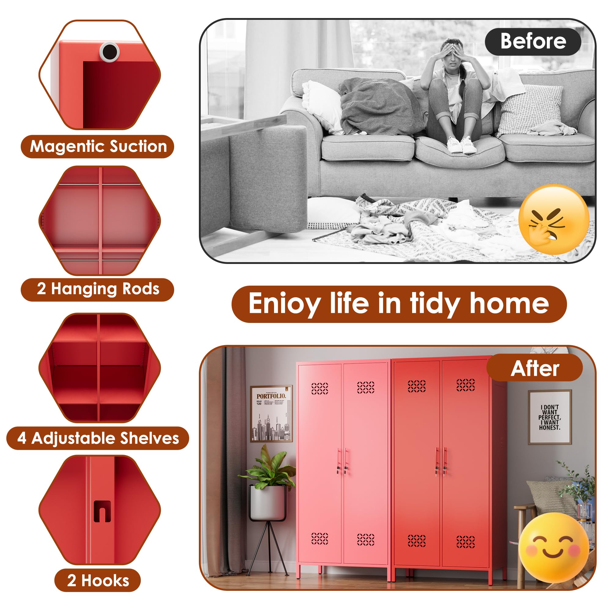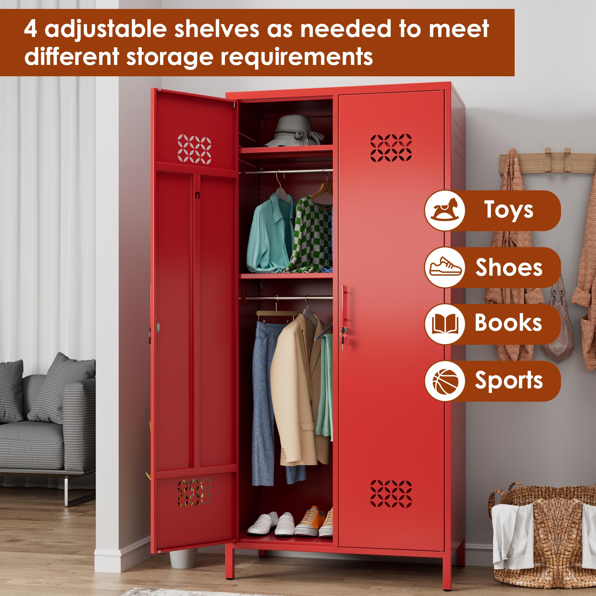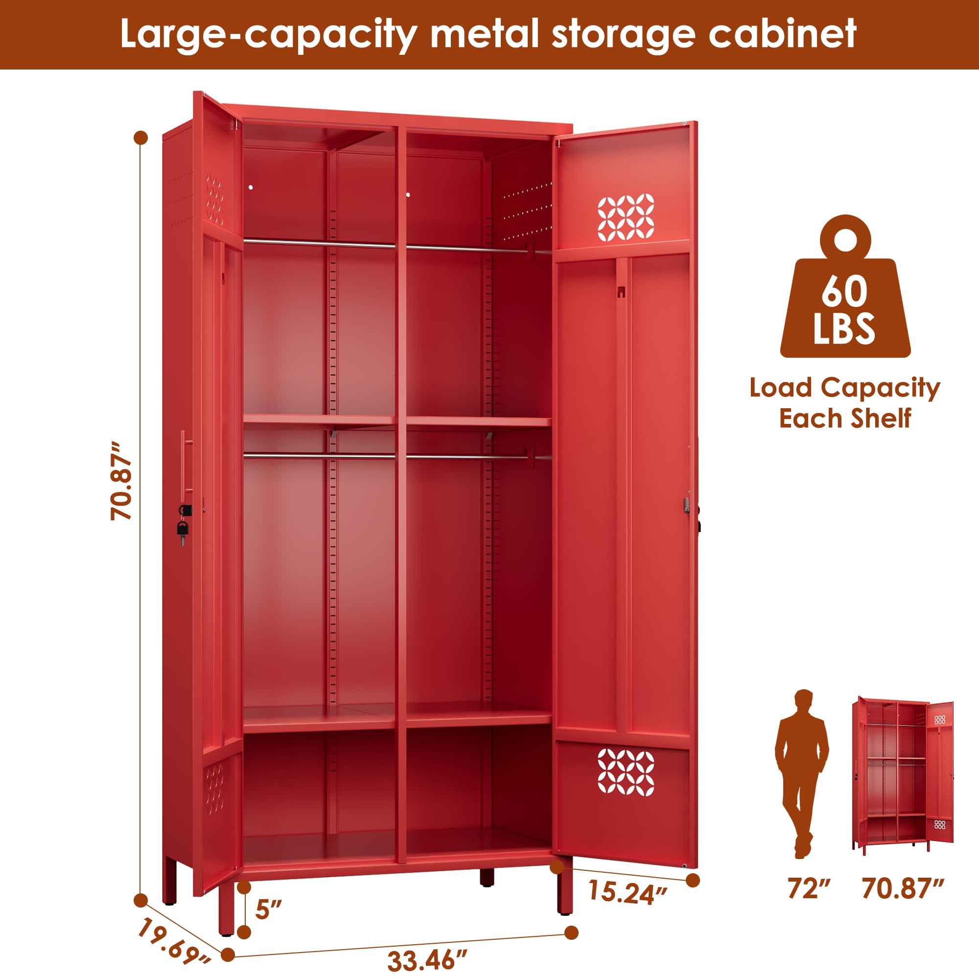 • 【Unique Design】Metal armoire wardrobe closet doors are equipped with ventilation holes,which help you keep items dry and ventilated,eliminating odor and moisture.Both doors of the metal wardrobe closet are equipped with keys, which you can use as needed.