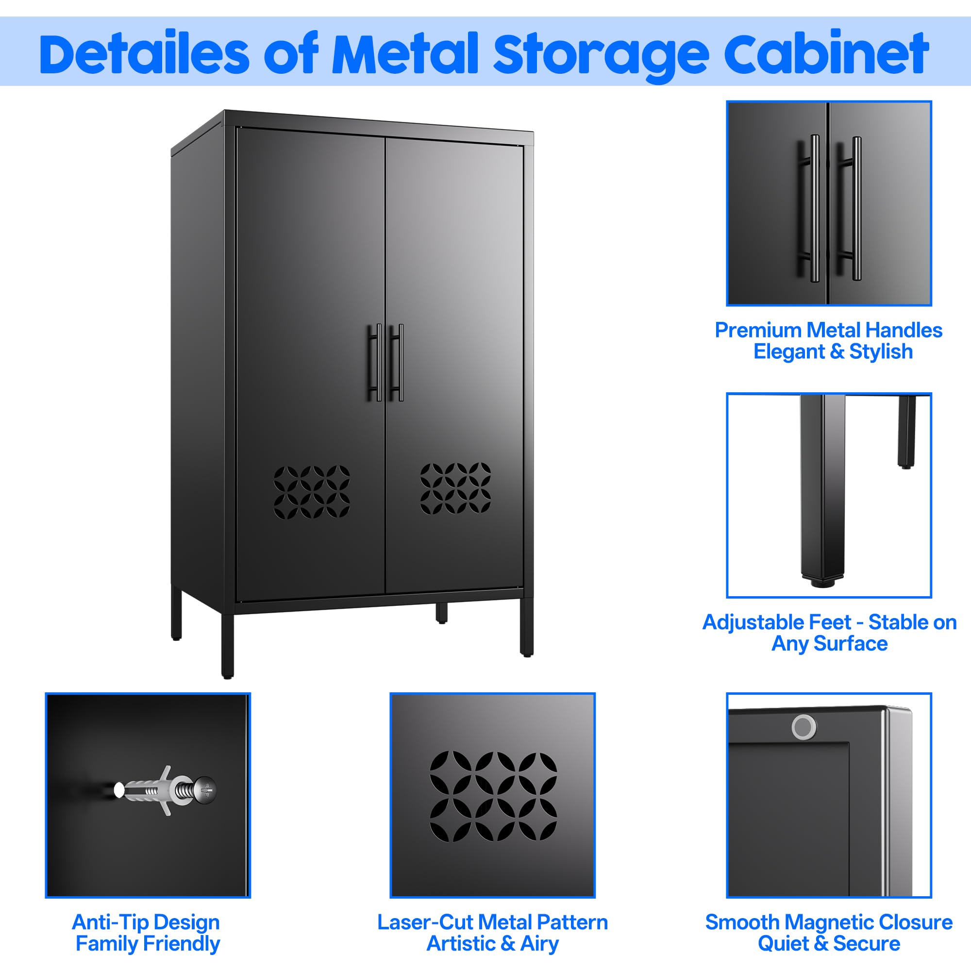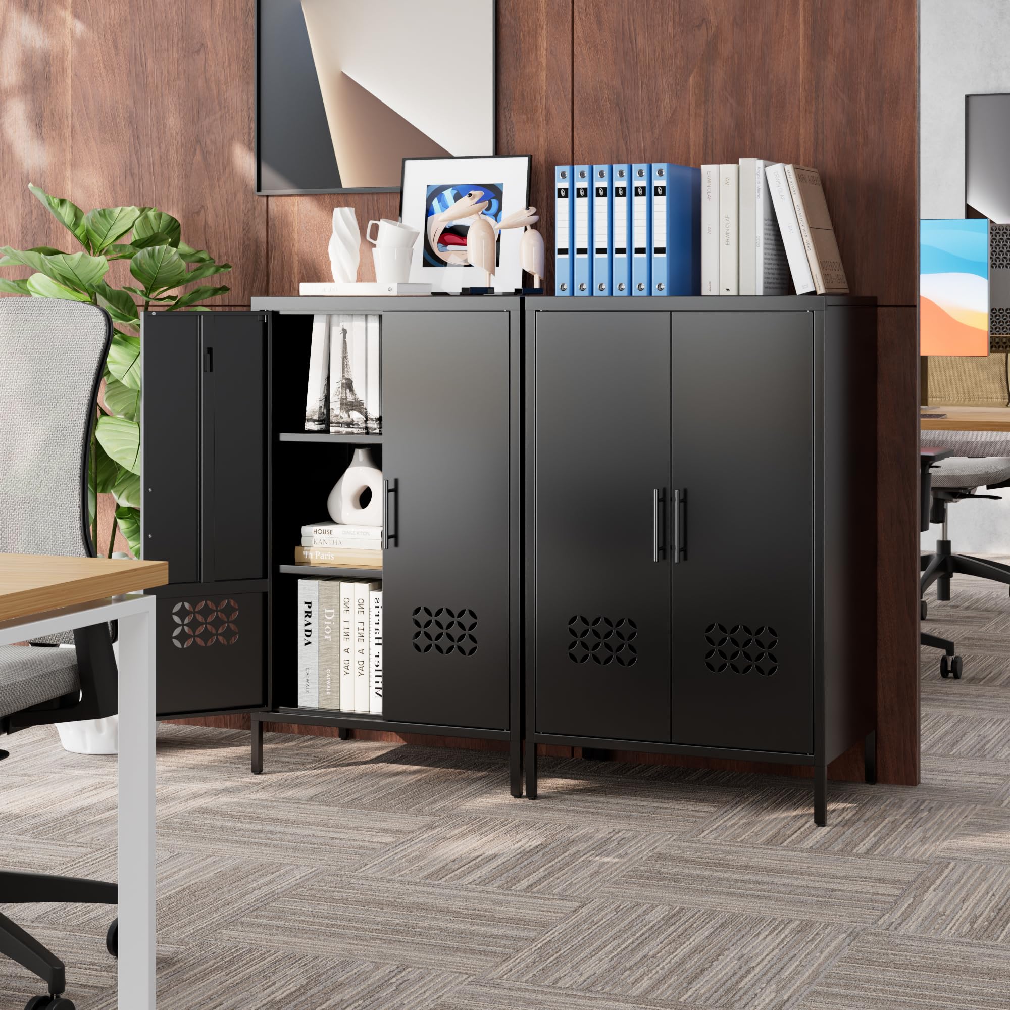 • 【High-quality Material】Metal storage cabinet is made of thickened cold-rolled steel plates, and the reinforced structure makes the sideboard cabinet more sturdy and durable. The locker cabinet adopts textured electrostatic powder spraying technology, which is scratch resistant, odorless, and easy to clean.