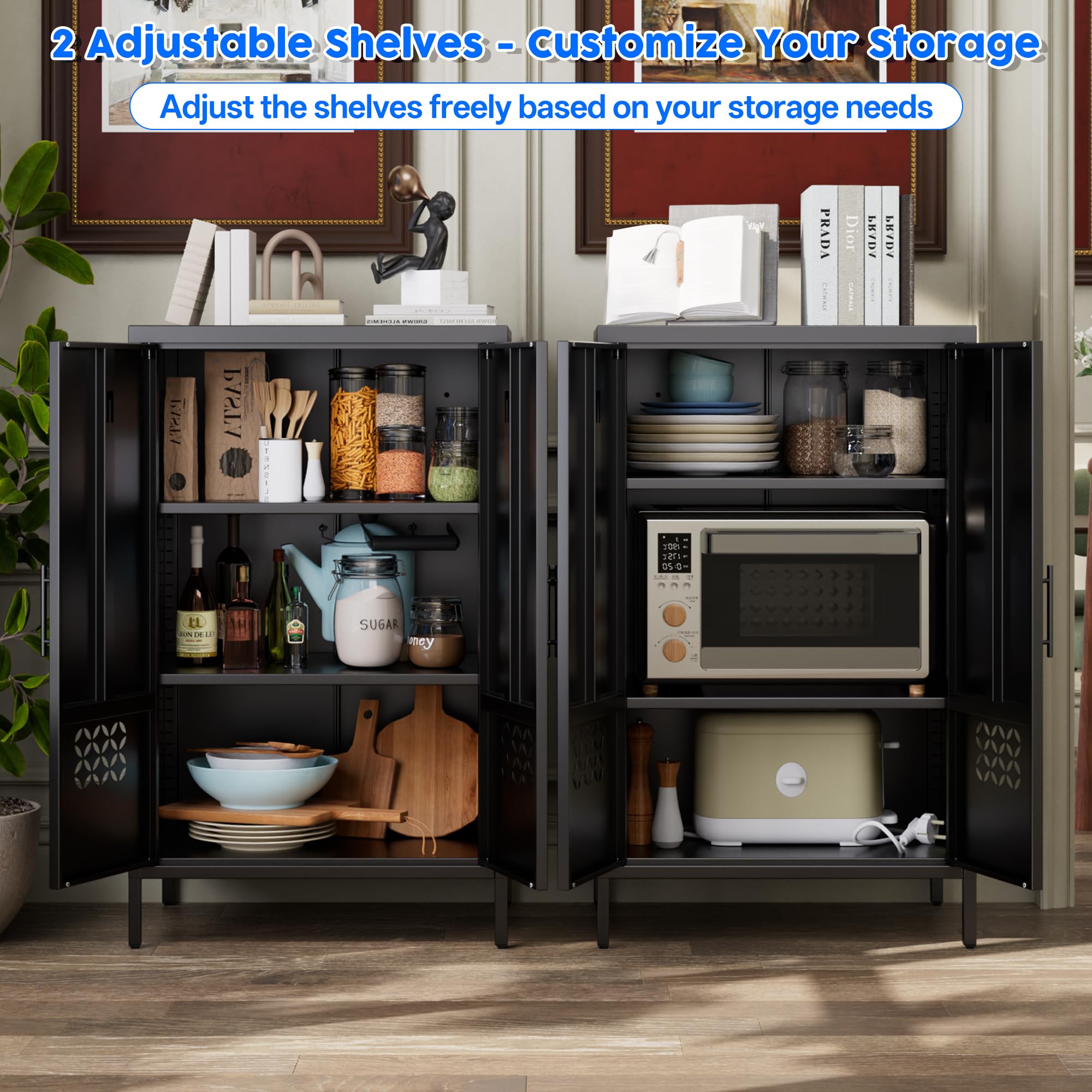 Home > Metal Storage Cabinet With Adjustable Shelves,Metal Sideboard Cabinet With 2 Doors For Home,Office,Assembly Required,Black