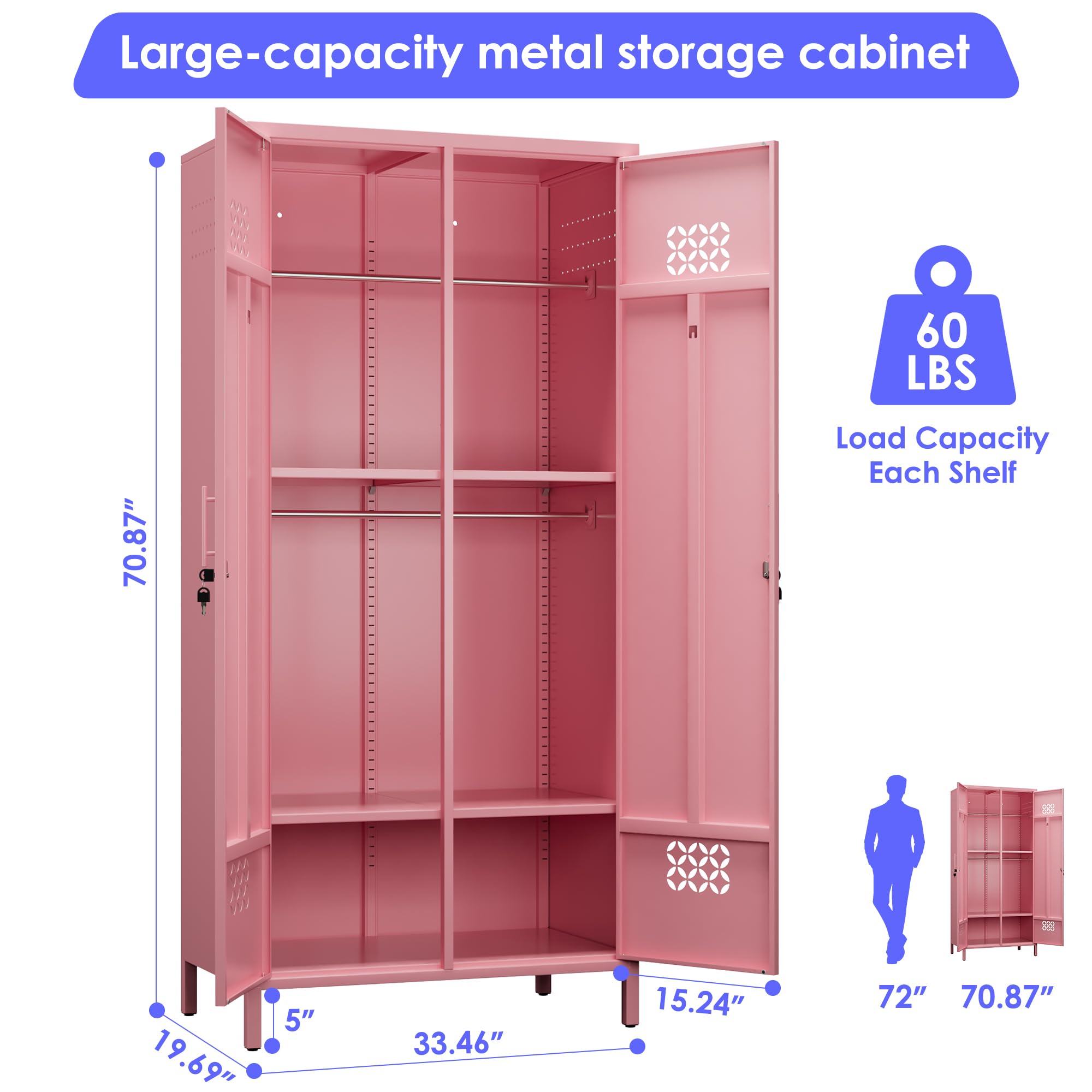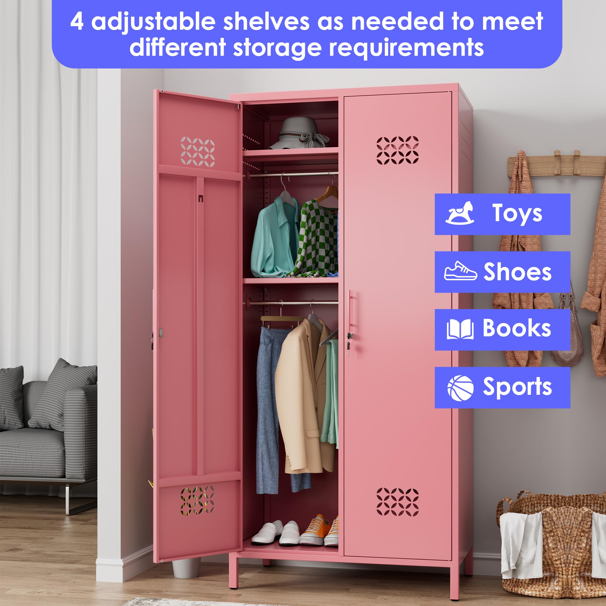 Home > METAN 71inch Hx33.5inch Wx20inch D Metal Wardrobe Closet With Lock,Extra Deep 2 Doors Metal Wardrobe Cabinet For Home,Assembly Required,Pink