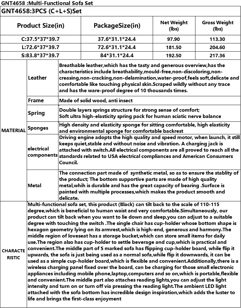 Home > Pickup Only--Black Breathable Leather 3-Piece Living Room Functional Sofa Set