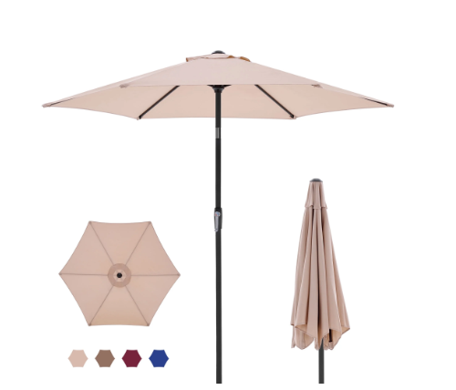 7.5-foot Outdoor Terrace Sun Umbrella, With Button Tilt And Hand-cranking Device, 6-rib Design, UV15- Waterproof Fabric
