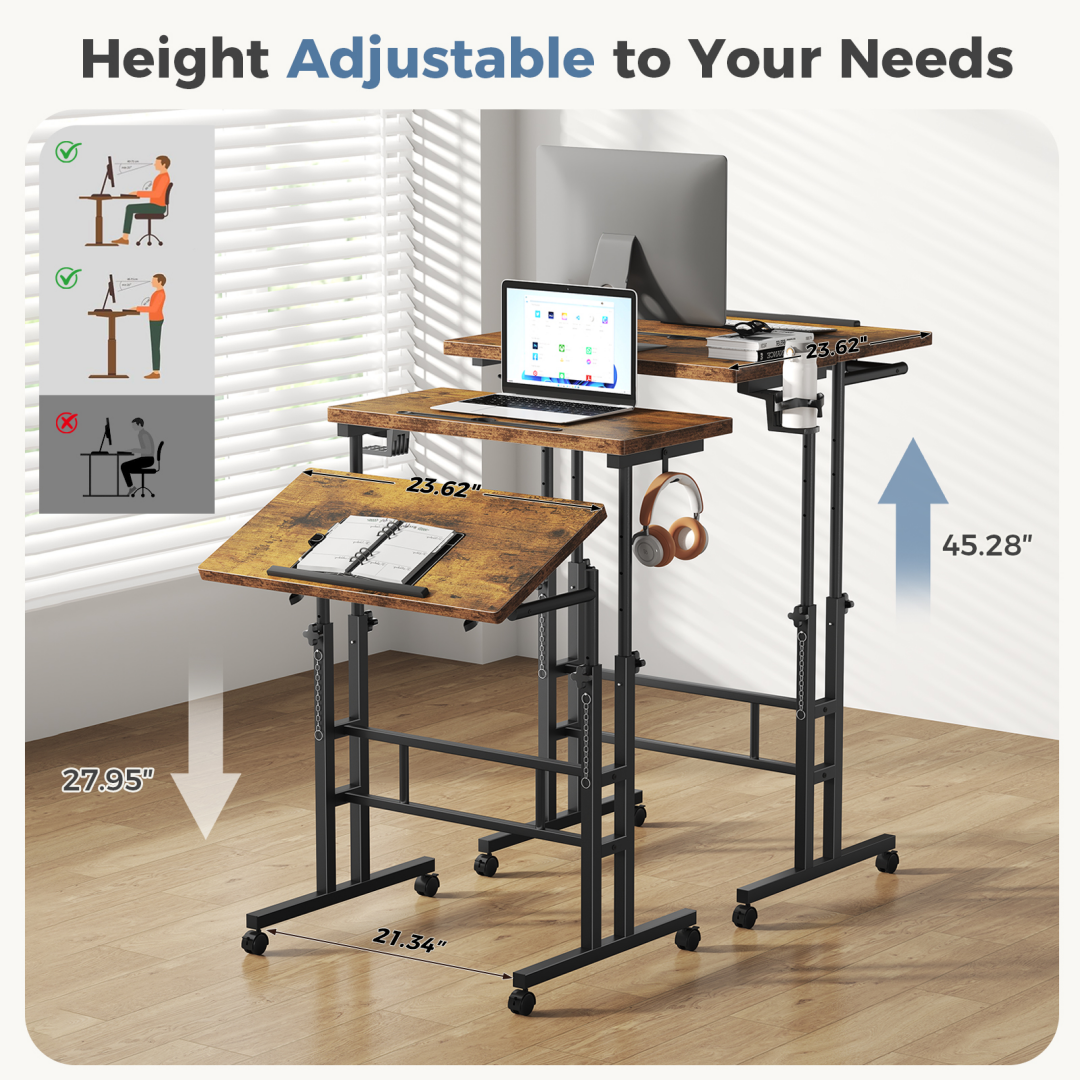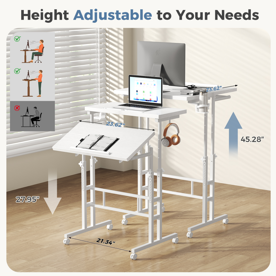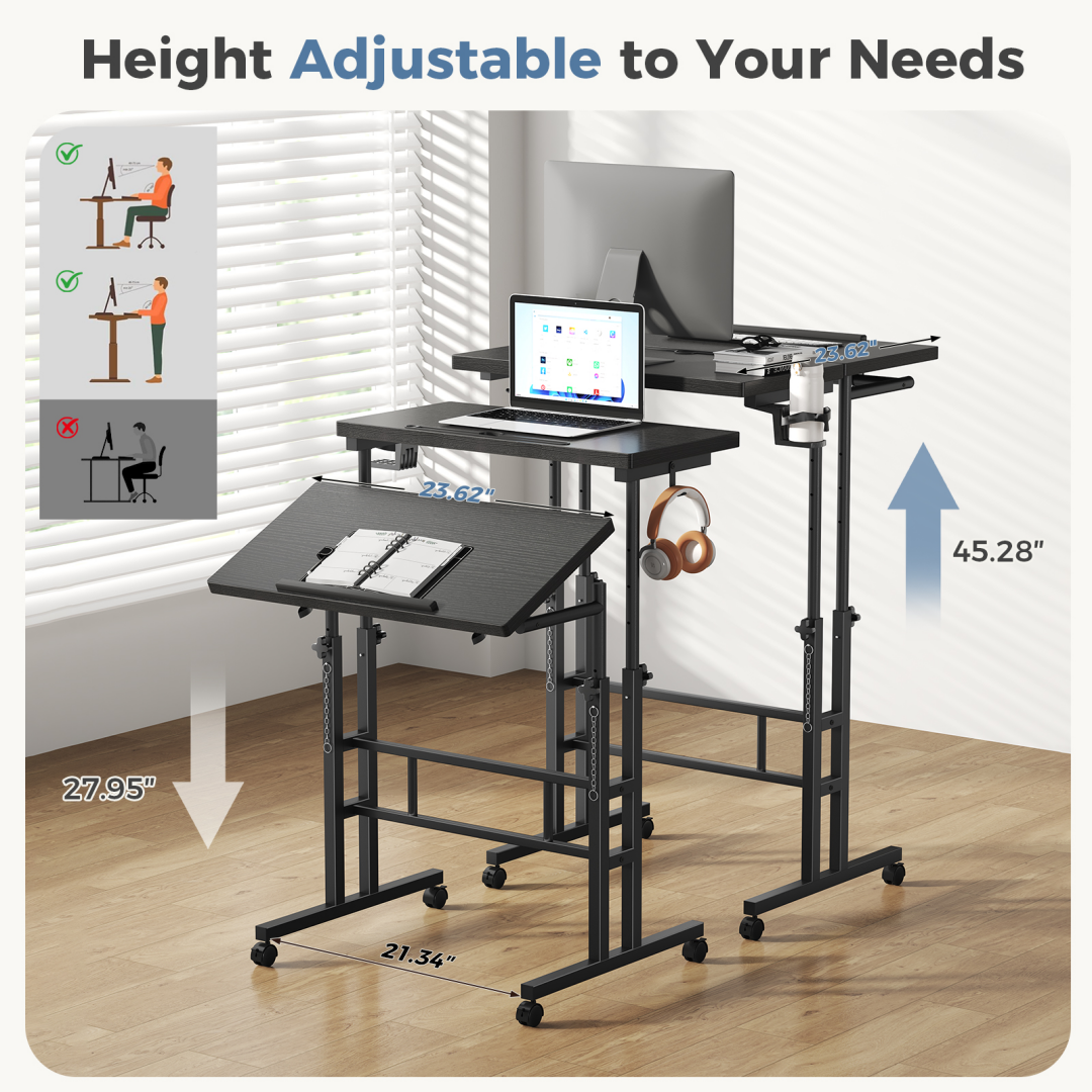The professional folding desk adopts a reinforced knob adjustment system. The height can be freely switched between 28 inches and 45 inches. Without electricity, it can easily be used for sitting or standing work, conforming to ergonomics and preventing fatigue from prolonged sitting.