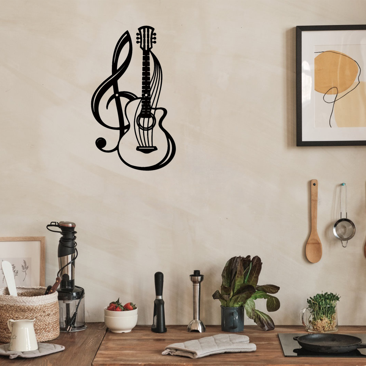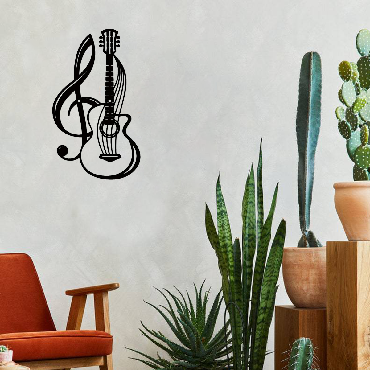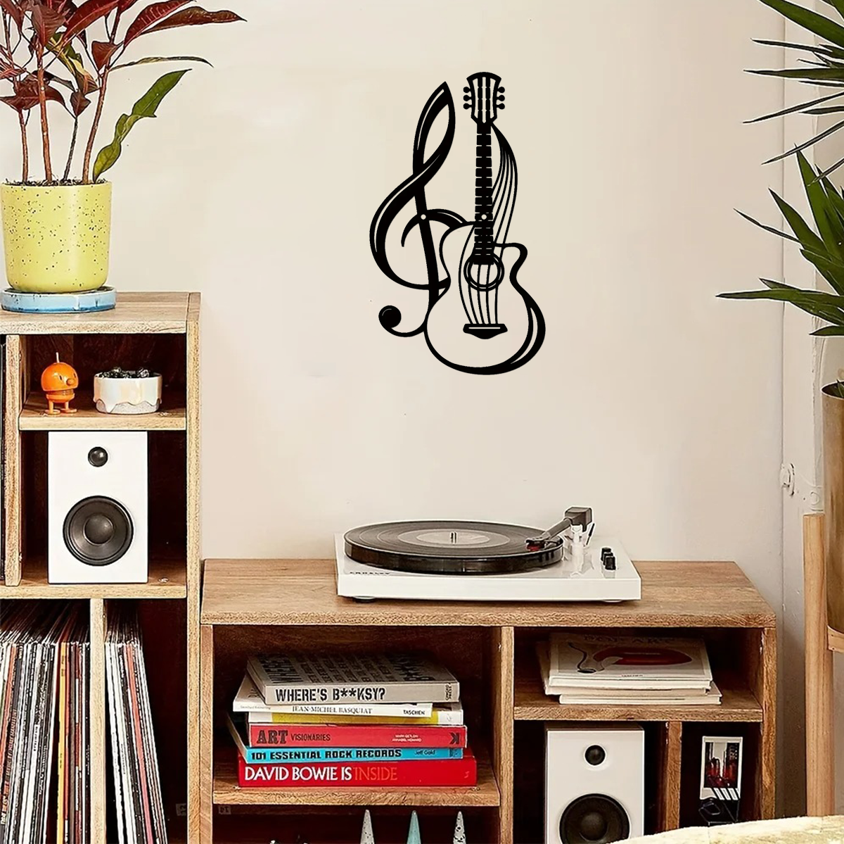 Vintage Black Electric Guitar Wall Art - Gothic & Grunge Decor